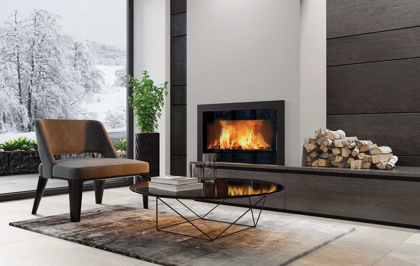 Poêle à Bois Chamonix XXL Décor Céramique porte Laitonnée 12kW
